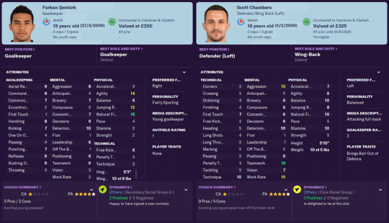 We also have a fine talent in one of our traditional problem positions. Left-back Scott Chambers might still have a lot of technical development to go through, but he scores highly on Teamwork and Work Rate, which is good enough for me!