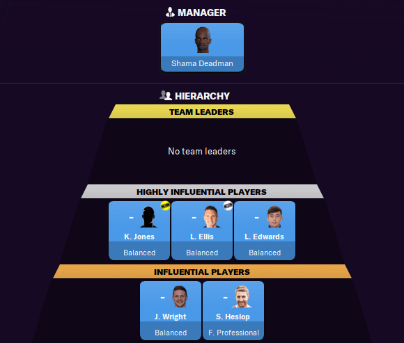 I’m well aware that a team without obvious leaders isn’t likely to achieve much, especially when the going gets tough. Believe me, I’ve been on the lookout for experienced players who can inspire this team for a while. That’s exactly why I signed Heslop in the first place… not that it’s done us much good!