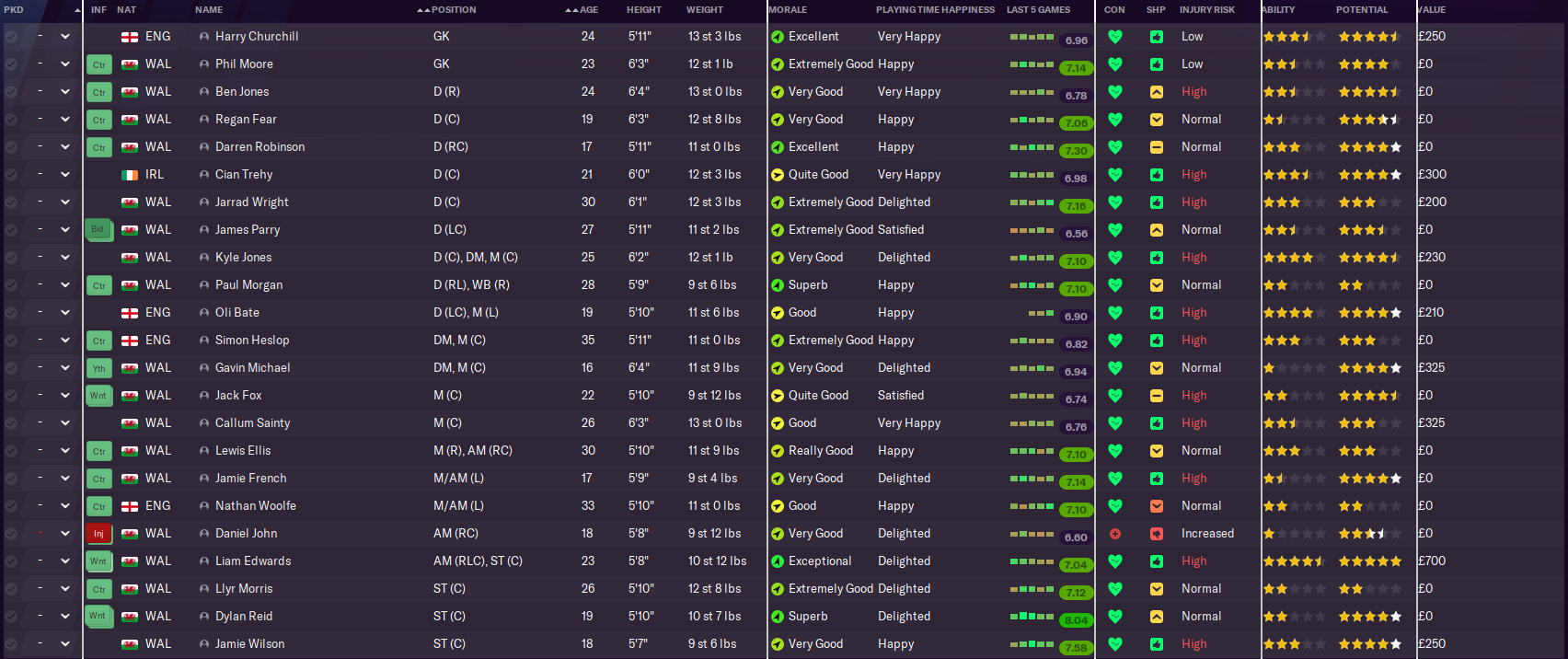 In terms of other potential leaders, Morgan was honestly the best player I could find who would come to us on reasonable terms. At this point, I might be better off trying to lure Vinnie Jones away from Hollywood. I know he’s in his mid-50s now and hasn’t played football since the 1990s, but I reckon he could still do a decent job in this league!