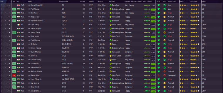At left-back, we have Oli Bate, who came through Millwall’s academy and is a great decision-maker. Then there’s our new backup goalkeeper Phil Moore, who has high scores in a number of key attributes and was signed from Cymru South promotees Caerau Ely. And finally…