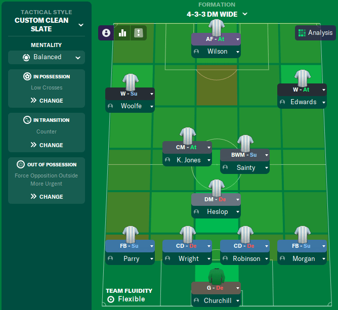 Our home form was worryingly patchy last season, perhaps because we were too cautious. With that in mind, I’ve also set up a 4-2-3-1 as a third tactic, in which Edwards will drop a little deeper to support the striker. I’m still working out which role combinations would work best, particularly with the two wingers.