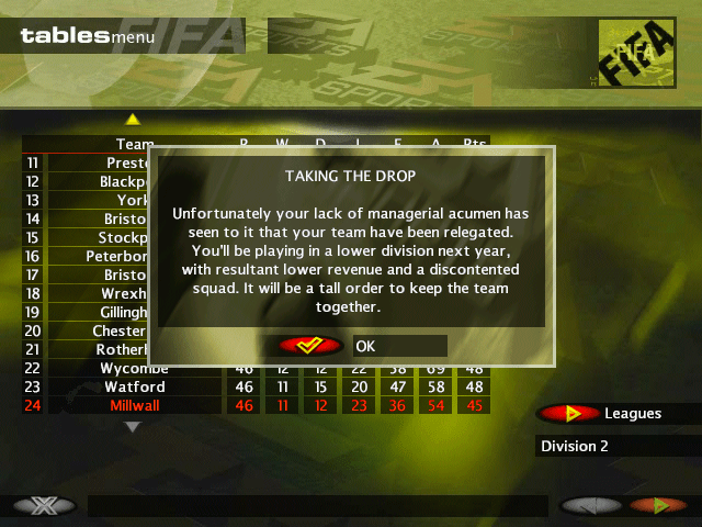 EA even have a video ready go in the event that you are sacked. What’s more, IF you do get fired, it really is game over, because the program will DELETE your save file before you can back it up in Windows! It’s probably one of the earlier examples of ‘ironman mode’ in video gaming, but if you have the misfortune of experiencing this, I supect you might describe it differently.