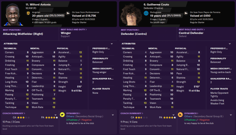 First up, those two loanees. Named after one of Arsenal’s greatest ever French strikers, Wiltord Antonio was a quick young winger from Portimonense who could also play in attacking midfield. We also took in the strong-tackling defender Guilherme Couto from Paços de Ferreira for the rest of the season.