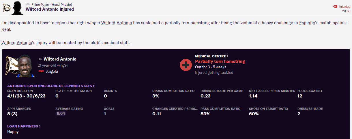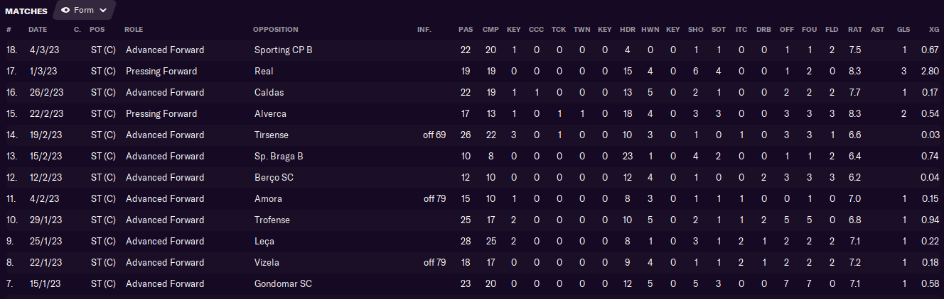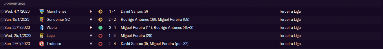 Then we hosted mid-table Alverca, in what would be my most stressful game yet! Pereira poked in a long throw from Godfred Twumasi to give us the lead, only for us to let our guard slip again. An error by midfielder Álvaro Milhazes allowed Alverca to equalise from a counter-attack, before a less impressive Twumasi throw let them complete the turnaround!