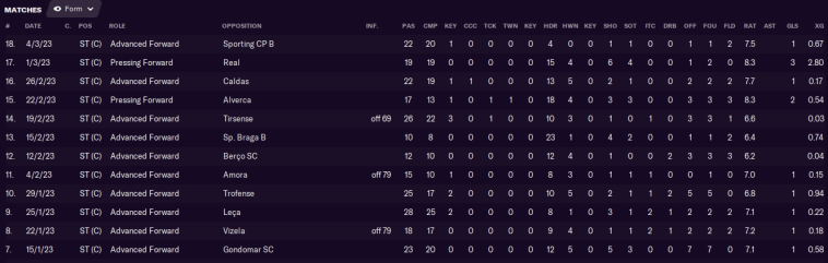 Well, I was feeling optimistic until we kicked off February with another disastrous result. 1-0 up against Amora after 22 minutes… lost 2-1. It seems as if whenever Pereira scores, the rest of our team suddenly decides to switch off!