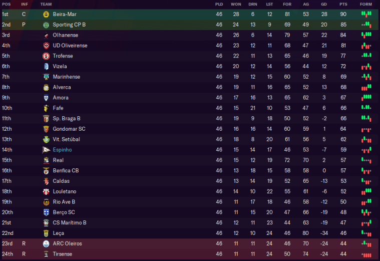 Take Pereira out of the team, though, and you’ll struggle to find any real firepower. Left-winger David Santos was the only other Espinho player to reach five goals, and the only team who scored fewer Terceira goals than us was Marítimo B, who barely avoided relegation.