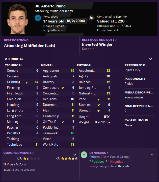 And we also have a wide attacker who can actually cross the ball… kinda. Afonso Gonçalves is a hard-working inverted left-winger who works hard, has a professional personality, and is naturally fit. He’s another talent worth keeping a close eye on.