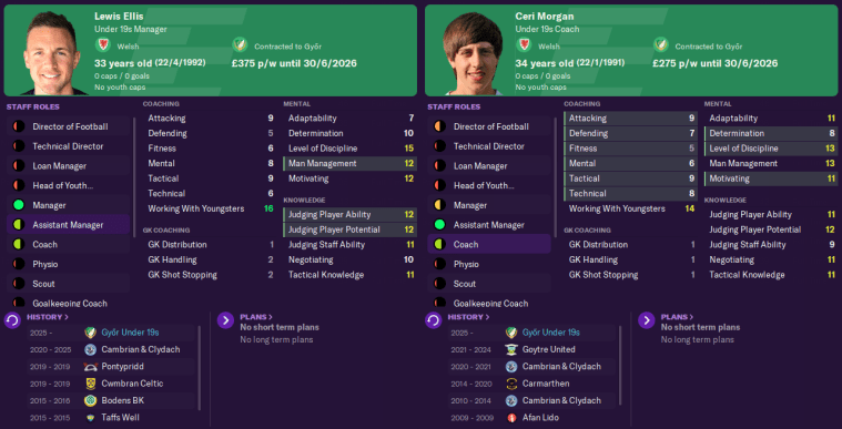 Right-winger Lewis Ellis had just retired after five years with the Cam Army, and he would start his managerial journey with our Under-19s. Alongside him was ex-Cambrian captain Ceri Morgan, whom I had finally forgiven for buggering off to Goytre United in 2021. Just as I want to develop our youngsters into first-team stars, I am also giving Lewis and Ceri every opportunity to become successful coaches.