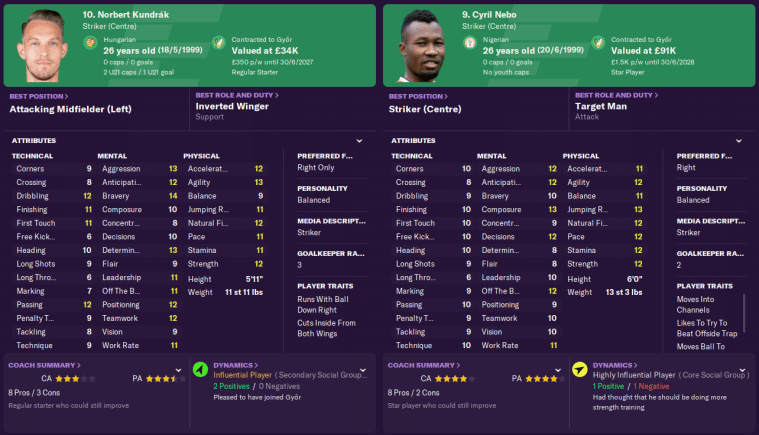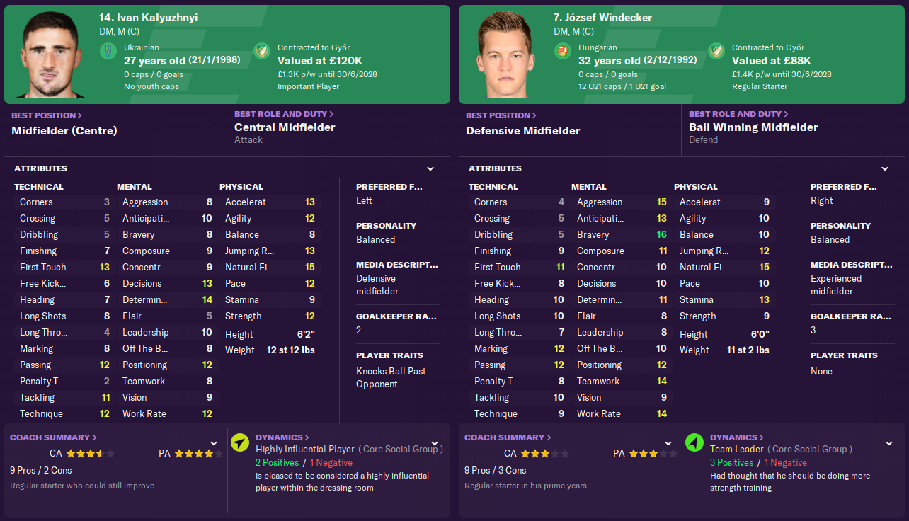 We now come to my annual squad report, and I’m cautiously optimistic about how my new Győr squad looks after another busy summer. As usual, I’ve written a small summary of each player, as well as attaching the profiles of those I expect to play most regularly.