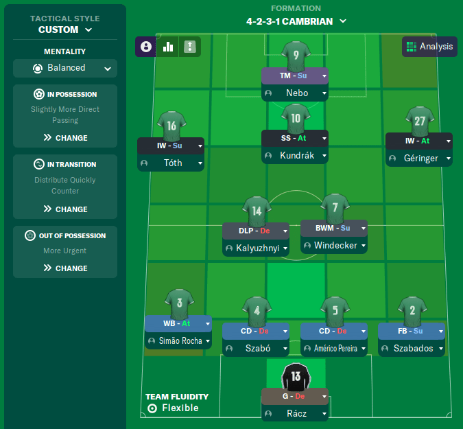 At the heart of our attack will be new captain Norbert Kundrák. An athletic player who’s capable of scoring and setting up goals, he will mainly operate as a shadow striker or a target man. The creative and technical Roland Hajdú can also play in that attacking midfield hole, though he is physically limited and is much more suited to playmaking duties.