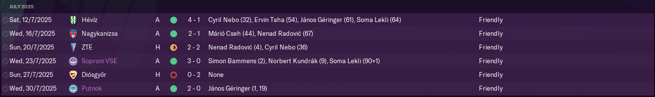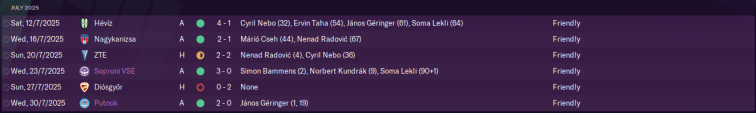 As pre-seasons go, this is a decent collection of results. Though our direct passing got sloppy at times and our defence had some teething problems, we won all our away games against lower-league opposition, scoring plenty of goals along the way. No absolute annihilations, but it’s early days, so I wasn’t expecting fireworks immediately.