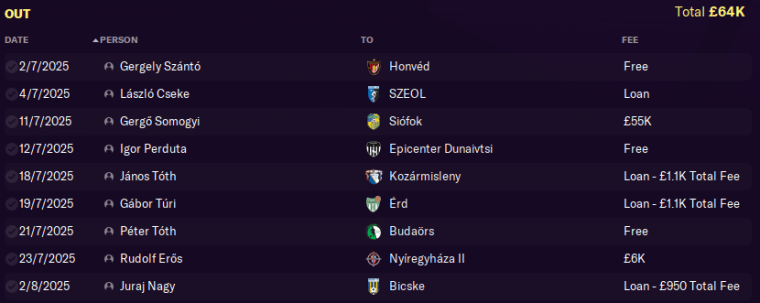 One player who I was disappointed to lose was Gergely Szántó. The Hungary Under-19s centre-half had already agreed to join Honvéd – one of the country’s traditional giants – on a free transfer. I tried to get him back on loan, but no dice.