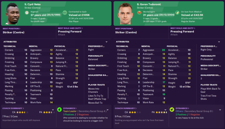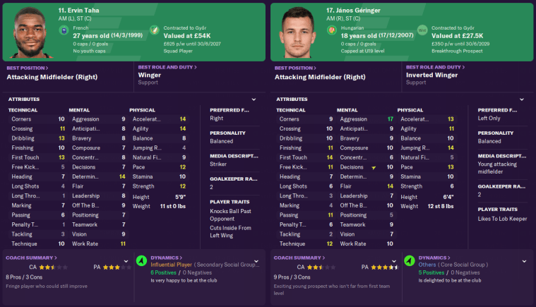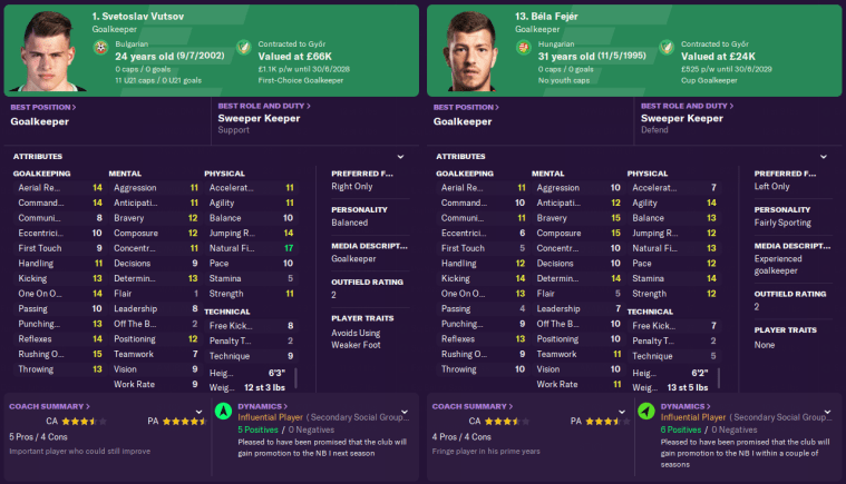 Next in the pecking order are a couple of promising youngsters in Tibor Fehér (18) and Dávid Kiss (17). Fehér in particular should continue to get his fair share of gametime this season, but I’ve tried to send Kiss out on loan without success.
