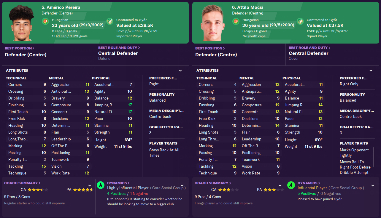 Our star centre-half in recent years has been 23-year-old Américo Pereira, who is a strong aerial presence but hasn’t really developed much over the past 12 months. Pereira was often partnered by Alex Szabó last season, and the dependable duo are now joined by Mocsi, whose composure and anticipation makes him a fine covering defender.