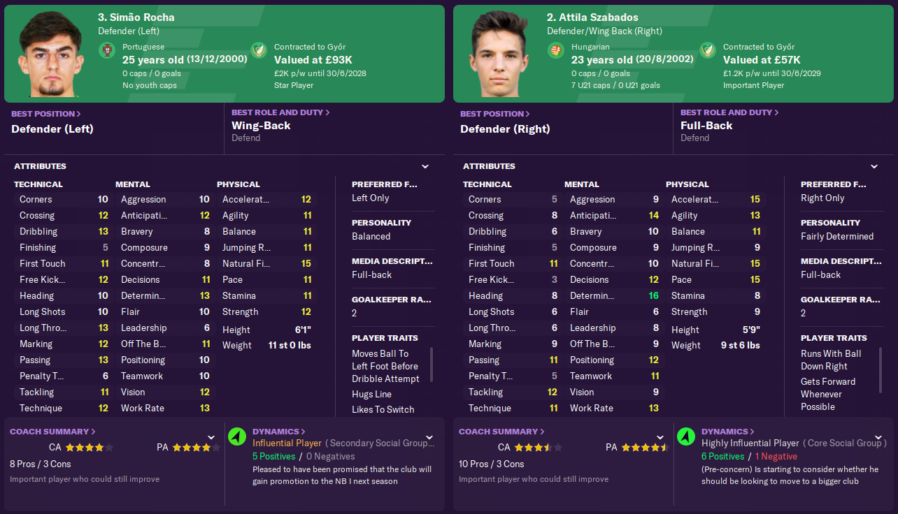 Simão Rocha was voted the NB II’s Player of the Year last season after providing 13 assists from left-back, and I’m expecting another big campaign from the Portuguese star. Though Barnabás Nagy doesn’t have quite as much technical ability as Rocha, he is still a pretty nifty left-back in his own right.