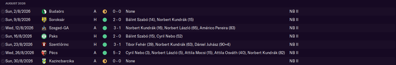 That was followed by another five-star performance, this time making light work of fourth-tier PVSK in the first round of this season’s Magyar Kupa. Juhász bagged a brace, as did our Montenegrin loanee Goran Todorović, but it was Bálint Szabó who stole the show with one goal and three assists! Bálint’s contract expires next summer, and I reckon he might be after an extension!