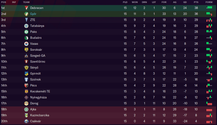 Of course, it was all well and good starting the season with an 11-game unbeaten run, but we hadn’t yet faced any particularly strong teams. September ended with our first major test, as we went to Zalaegerszeg – the home of ZTE, who were chasing an immediate return to the NB I after relegation.