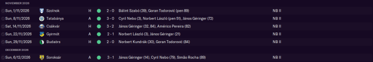 With those last two wins, we increased our lead over 3rd place from 11 points to 16. Promotion was getting closer… but we couldn’t afford to lose focus, as our next game at Nyíregyháza showed.