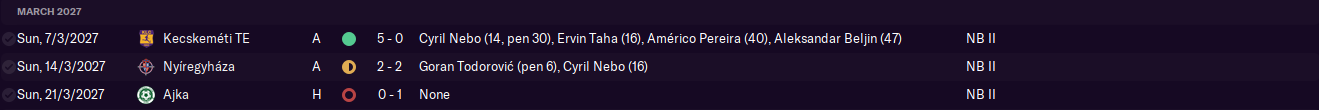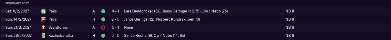 That’s right… we SMASHED THEM. A Rocha free-kick and another Nebo brace made light work of Barcika, and we could have won by even more had József Windecker not had a late penalty saved. Windecker’s physical abilities had declined dramatically over recent months, and it felt like the beginning of the end for our 34-year-old midfield destroyer.