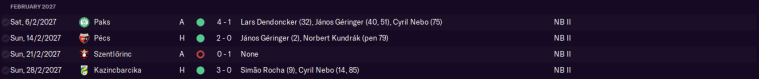 After our January blues, February started with a much more impressive win over Paks. This match was a battle of the 4-3-3s, but their narrow version with three centre-forwards was trounced by our wider, counter-attacking version.