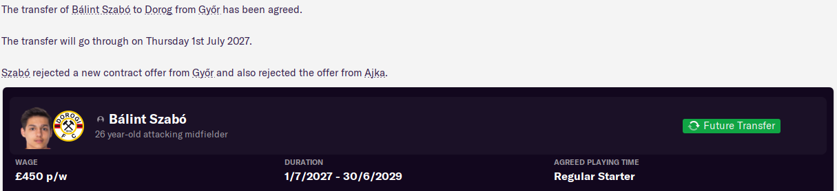 So… Kalyuzhnyi did leave after all! The last straw was the cup loss against Budafok, where he made a shaky start and posted a 6.3 match rating. Not exactly Ivan the Terrible, but still very poor.