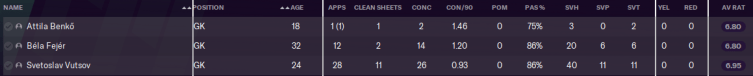 We had a serious post-promotion hangover, almost losing to rock-bottom Csákvár before Nebo bailed us out six minutes from the end. Fejér had not covered himself in glory for the opponents’ goal, so I subbed him off and gave a debut to Under-19s goalkeeper Attila Benkő, who then started our next match.