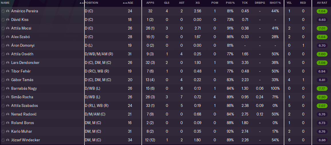 In this case, it’s easy to blame the keeper. Vutsov kept 11 clean sheets in 28 games, but his save ratio of 70% ranked him only 17th among all goalies in this division. Fejér and Benkő were hardly any better, so one of my first jobs this post-season will be to sign a more dependable number 1.