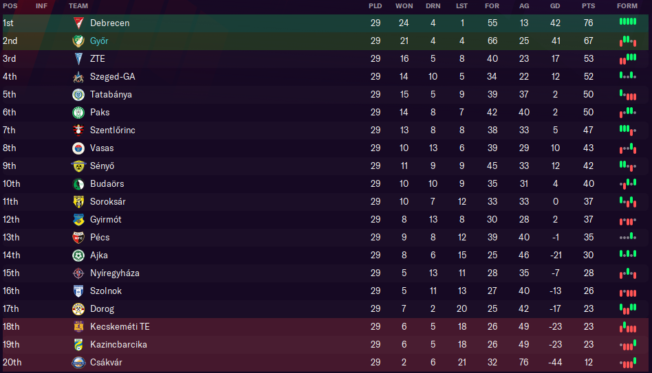It’s the 2026/2027 season finale, and Győr are closing in on a place in Hungary’s first division. In case you missed the previous chapter (and I suspect many of you have), we left them sitting 2nd in the NB II, with promotion looking almost certain barring a late collapse.