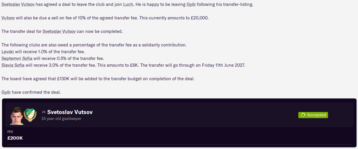 At any rate, I’m happy to stay at Győr for at least one more season, as we look to establish ourselves in the NB I once again. Also, I’m getting a 15% pay rise, taking my weekly wages up to around £2,200… which is cool, I suppose!
