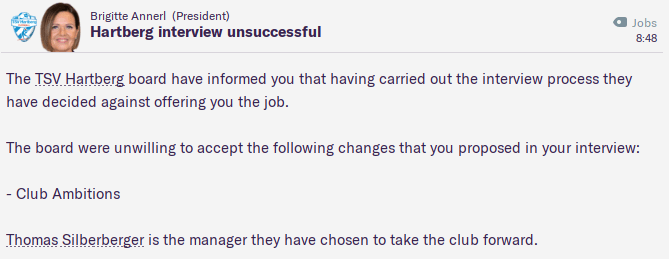 These offers came from SV Ried (who were 12th and bottom) and TSV Hartberg (who were slightly higher in 9th). While I didn’t really fancy a relegation battle, I still attended the interviews out of courtesy.