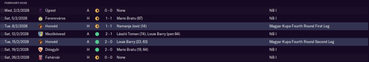 Just like in October, we kicked off February with a couple of hard-fought draws against the top two. We shut out 2nd-placed Újpest at their place, with a fantastic performance from Patrik Demjén showing exactly why he was still our number 1 goalkeeper. George Kovács was getting very impatient on the bench, but hey – I’m not taking Demjén out of the team while he’s still playing so well!