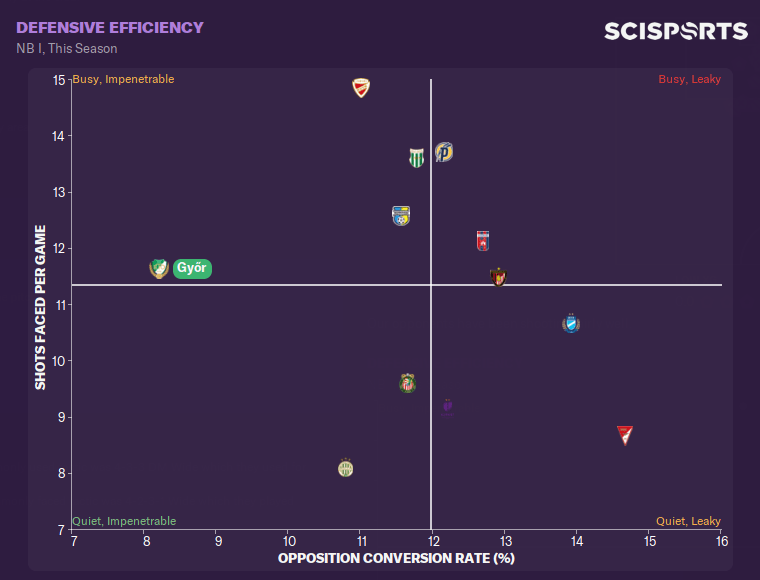 At any rate, our defensive transformation over the past 12 months has been astonishing. In terms of our opposition shot conversion rate, we’ve gone from having the WORST defence in the NB II… to having the BEST in the NB I! In fact, we were the only team in the top flight to concede fewer than 10% of our opponents’ chances.