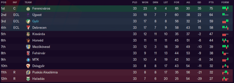 In their first season back in Hungary’s top division, Shama Deadman’s side built on a strong start and secured an unexpected 3rd-place finish – and a spot in the Europa Conference League next term! They also made it through to the Final of the Magyar Kupa, which you can read about here if you haven’t caught up yet.