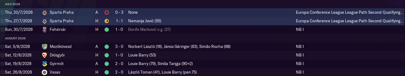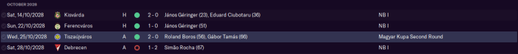 Sadly, we then came unstuck against our perennial nemeses Debrecen. In fairness, they were the more creative team and broke the deadlock after almost an hour. Though Rocha got us back level after a very clever corner routine with Lászlo, our defence switched off in stoppage time and conceded a last-minute winner. Dagnabbit!