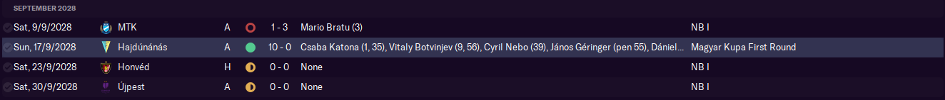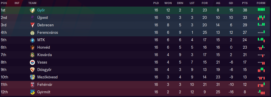 Unbelievable! Újpest had another wobble, so we will go into 2029 with a five-point championship lead! And what’s more, Ferencváros have drawn several more games and are now 11 points adrift! After a decade of total dominance, is this the season that Fradi’s monopoly of the Hungarian league comes to an end? Is this the season that Győr take over?