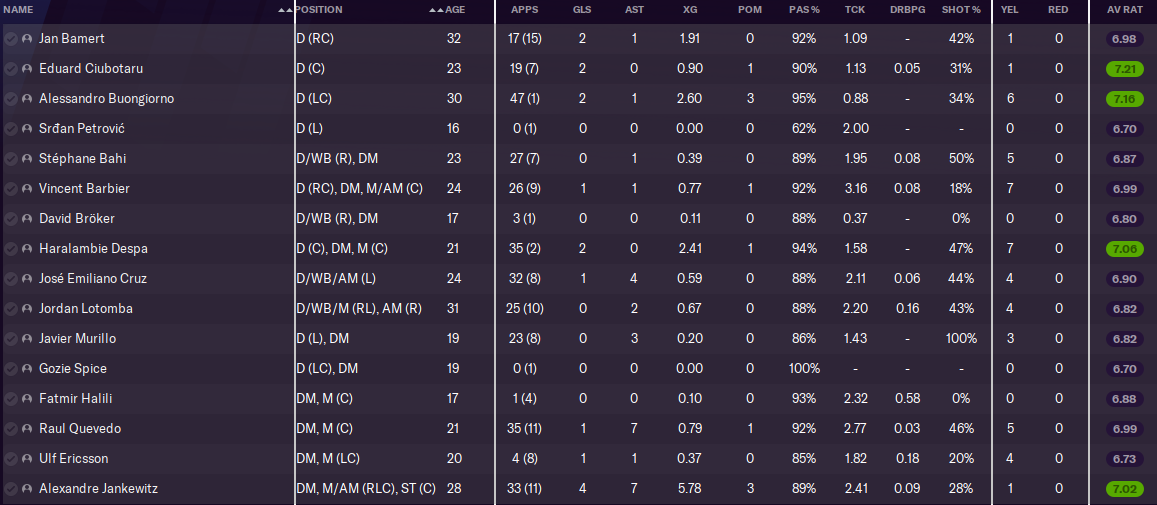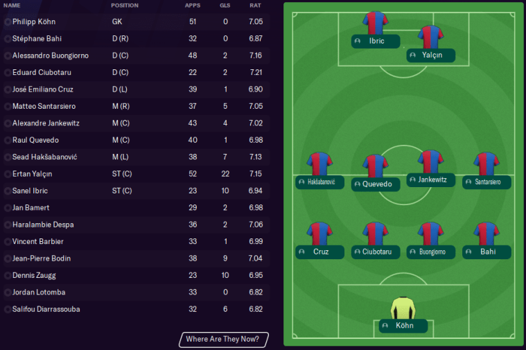 Defensively, long-time captain Alessandro Buongiorno hardly put a foot wrong, and was clearly galvanised by the arrival of young Romanian Haralambie Despa as his new centre-back partner. Basel conceded just 24 league goals this term, compared to 47 in the season before my arrival, and goalkeeper Philipp Köhn kept a league-high 17 clean sheets.
