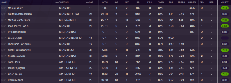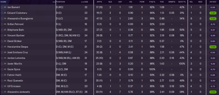 Alexandre Jankewitz was consistently solid at both ends of the pitch as a box-to-box midfielder, while 21-year-old Raul Quevedo‘s emergence as a playmaker has been encouraging too. However, club stalwarts Nicolas Janvier and Salifou Diarrassouba were both underwhelming in attacking midfield roles, and I’ll probably allow one or even both of them to leave this summer.