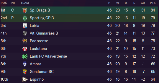 Sadly, Espinho have not come close to being promoted from Portugal’s Terceira Liga since I led them to 3rd place in 2024. The Tigres’ fortunes have fluctuated since my departure a year later, with various finishes between 6th and 21st. They made a terrible start to this season and were rock-bottom after 15 games, but eventually stabilised and ended up in mid-table.