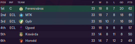 At one point, ETO were SIX points clear at the top… but unfortunately, they stumbled late in the season and had to settle for 3rd behind a resurgent Ferencváros and last year’s champs MTK. I know how you feel, Lewis…