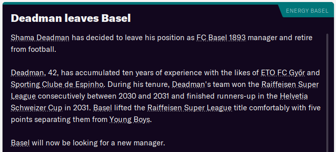 Now that I’ve made my name as a back-to-back league champion in Switzerland, you’d think that this would be the perfect take a crack at one of the bigger leagues. A chance to see if I could consistently compete with elite managers like Pochettino, Flick, Simeone, Pedro Martins… er, Frank de Boer (yeah, he’s at Arsenal now!).