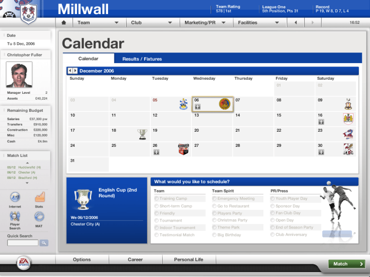 In February 2007, Köhler took on board some player feedback and released an expansion pack called FIFA Manager 07: Extra Time. If you play another EA franchise, the term “expansion pack” will send chills down your spine – but this was the first time it had been done for an EA Sports game. New features included an option to be a player-manager, and more match analysis tools.