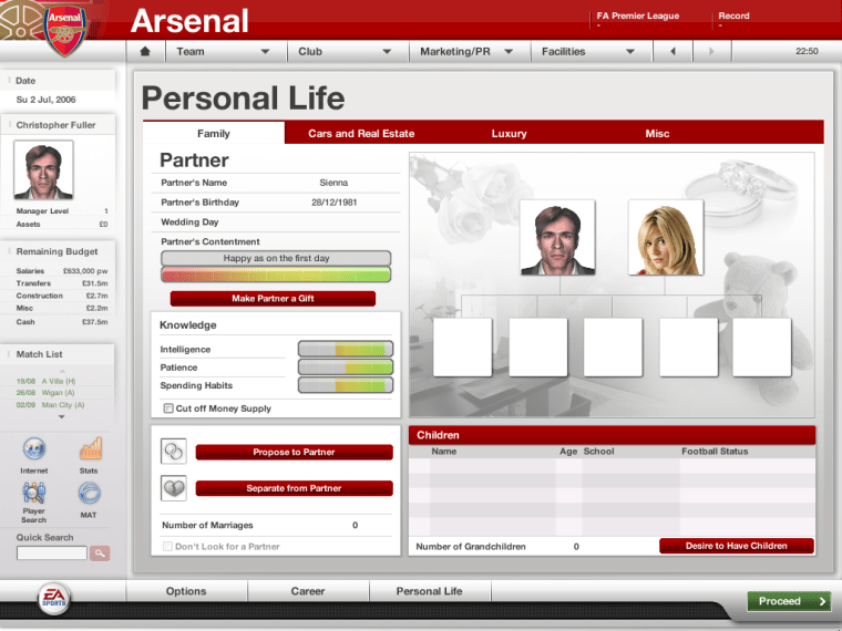 The impact all this has on your management career is negligible. Indeed, it can be quite easy to forget you have an in-game private life. I didn’t even notice that my manager had found a girlfriend until I saw a random blonde woman called Catherine suddenly pop up on his profile. (That lax attitude to relationships might explain why I’ve been hopelessly single since I was 14.)