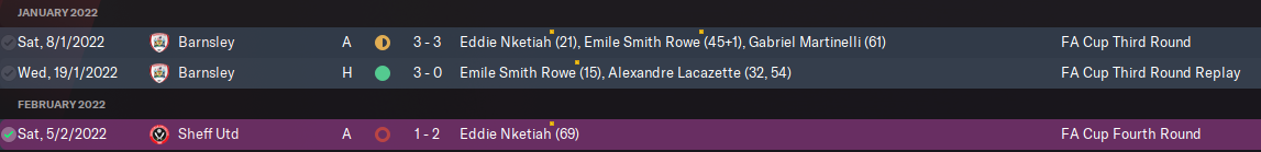 The less said about our FA Cup run, the better. Barnsley almost knocked us out in Round 3, as a strong Arsenal team took them far too lightly and fell behind – twice! Frankly, we were lucky to escape Oakwell with a 3-3 draw.