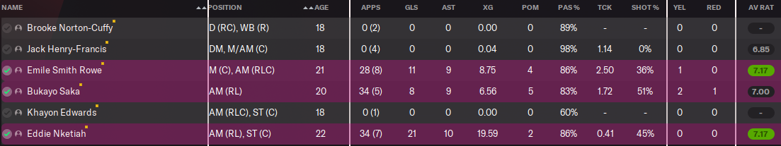 Erm… okay. Those star ratings may not look amazing, but it’s important to remember that these are relative to your team, so a player with 3* potential at Arsenal could potentially be Premier League quality. There are a couple in particular who look like genuine prospects.