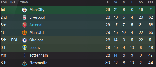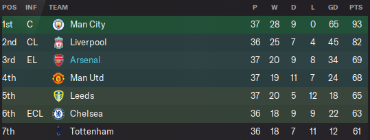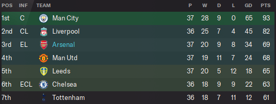 Our last match therefore didn’t matter, though I was still frustrated we failed to beat Palace. Not least because Manchester United won their final game, which meant they beat us into 3rd place. Still, coming 4th in my debut season wasn’t too bad, eh?