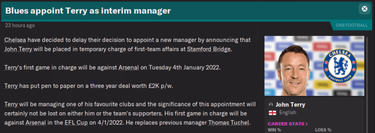 Remember when we used to joke that John Terry was secretly calling the shots at Stamford Bridge? Well, now he actually is – being promoted from Under-19s coach to interim manager after Thomas Tuchel’s dismissal. Terry’s first game in charge was the first leg of our EFL Cup Semi Final.