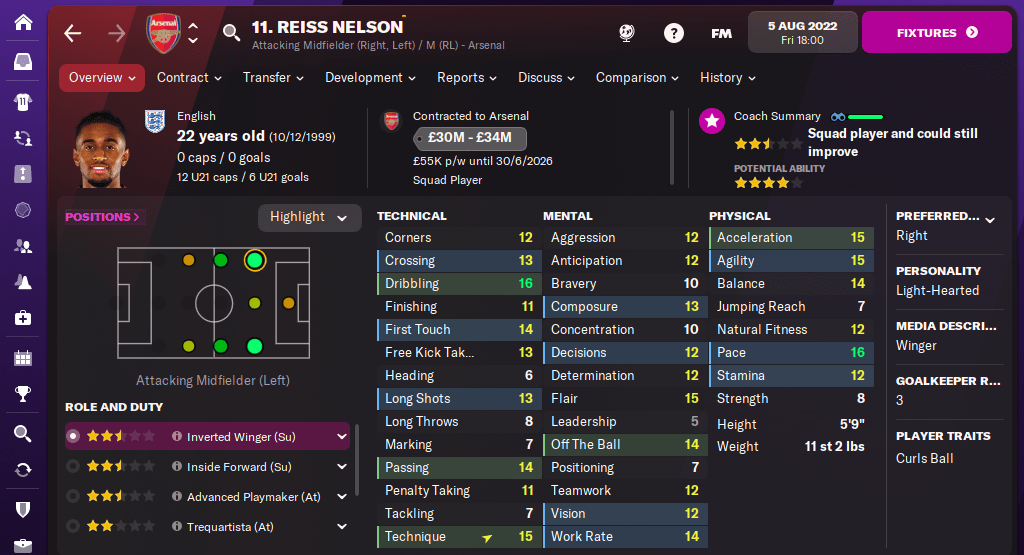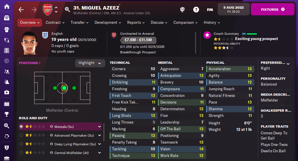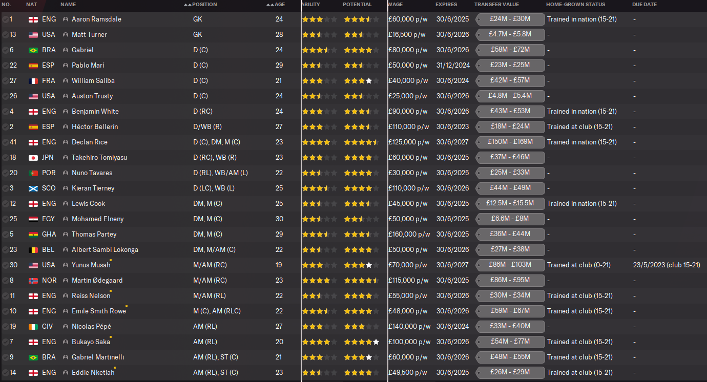 There’s another American fella I’m much more excited about. Three years after leaving the Arsenal academy to join Valencia, Yunus Musah has returned in an initial £30million deal. The midfield wonderkid is incredibly versatile (not a single attribute below 10!) and will mainly be used as an attacking mezzala, with Martin Ødegaard taking him under his wing.