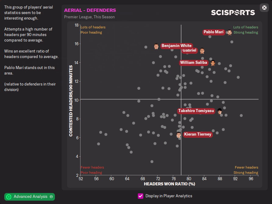I think our issues lie somewhere between Ramsdale and Rice. I noticed that we’re particularly vulnerable to long balls over the top, so I went back into the data hub and looked at our defenders’ aerial stats. Oh, look – there’s Benjamin White winning barely 70% of his headers! And can you guess who’s our only centre-half with an average rating below 7.00?