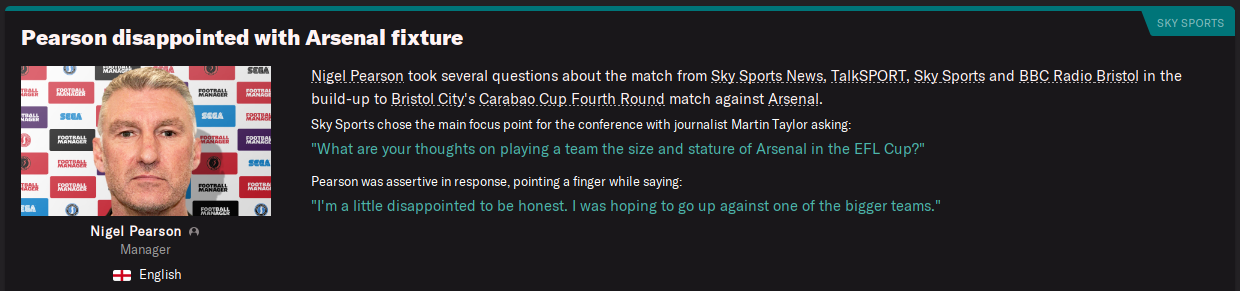 Our reward was a Round 4 tie against Championship side Bristol City, whose excitable young manager was clearly absolutely thrilled to be given such a plum draw…