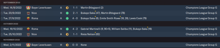 We netted four more goals in the return fixture at the Emirates, including three in the first 16 minutes, though Roma at least made it a contest. A 4-2 win basically ensured our progression from the group, and after a 1-1 draw at Nice secured top spot, the home stalemate with Leverkusen didn’t matter.